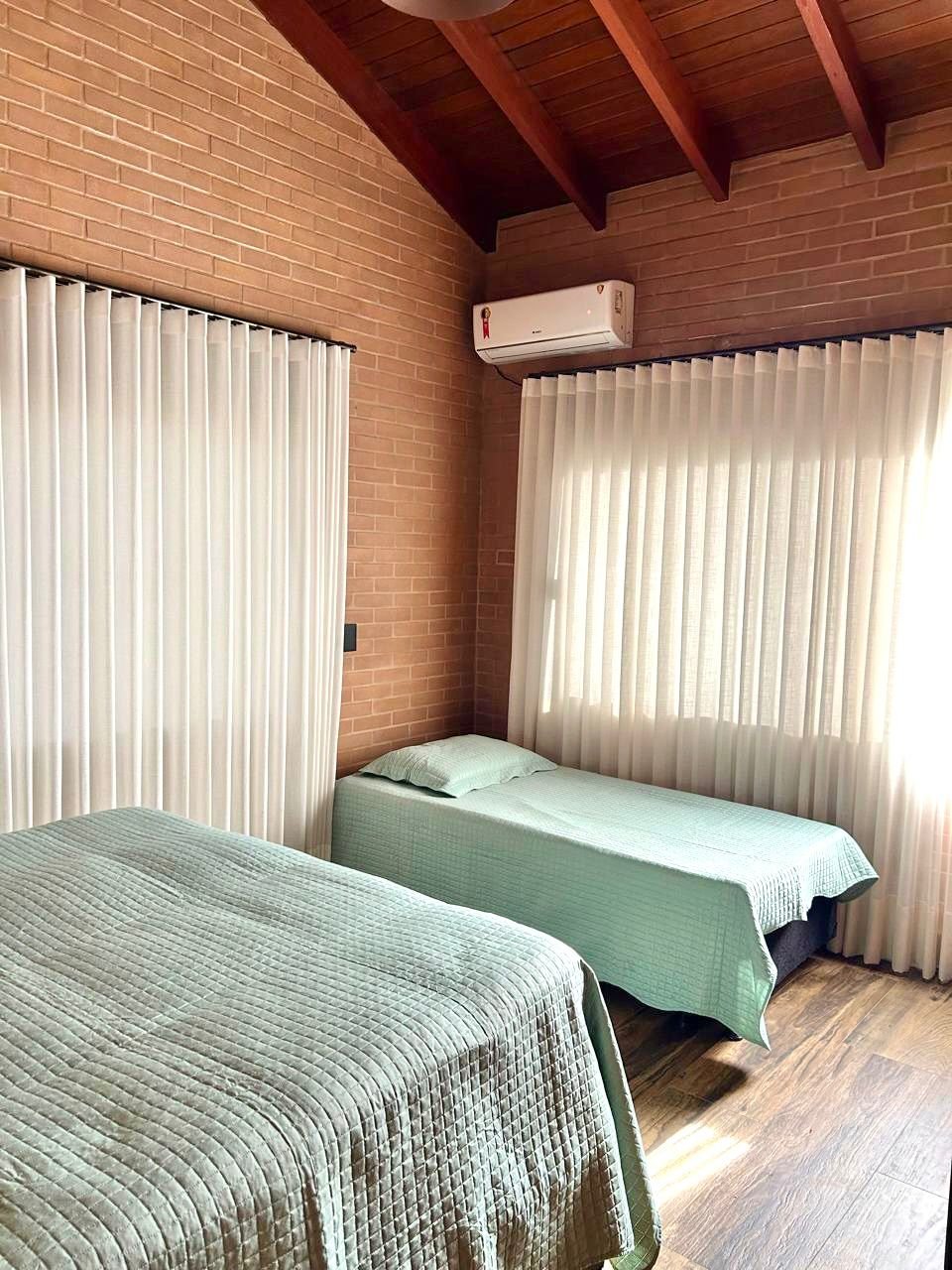 A casa acomoda confortavelmente até 10 pessoas, com ambientes charmosos e pensados para relaxar.