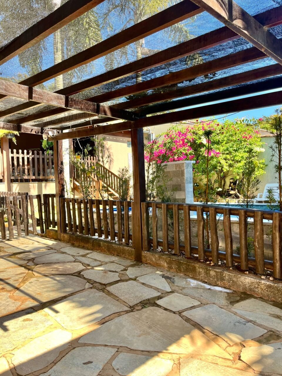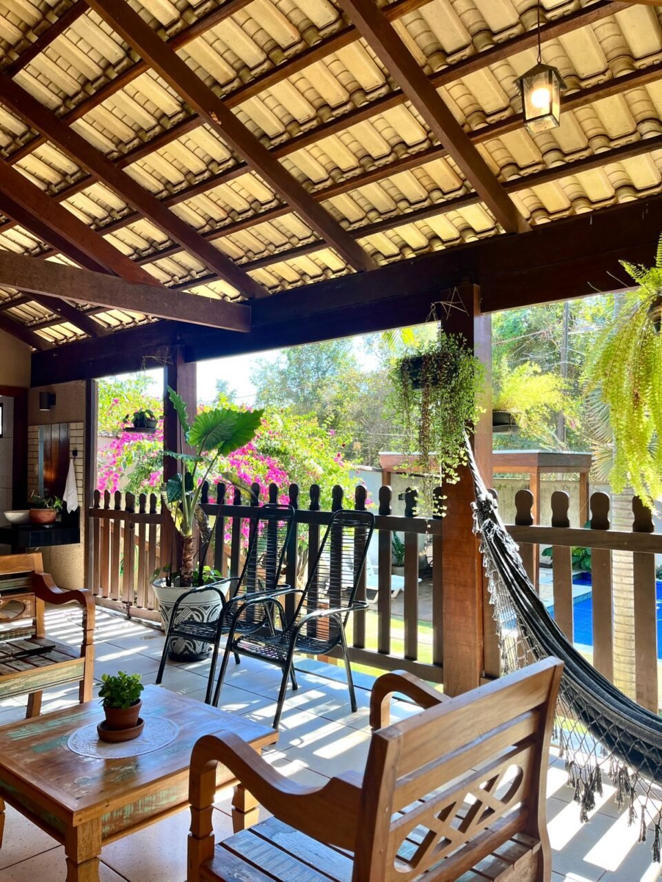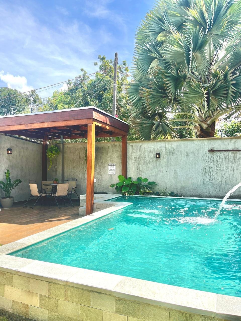 Espaços amplos e arejados circundada de área verde possuindo varanda e jardim com piscina com aquecimento solar, hidromassagem, cascata e ducha. A casa é composta por 3 quartos, sendo uma  ampla suíte com tv smart, todos com ar condicionado.