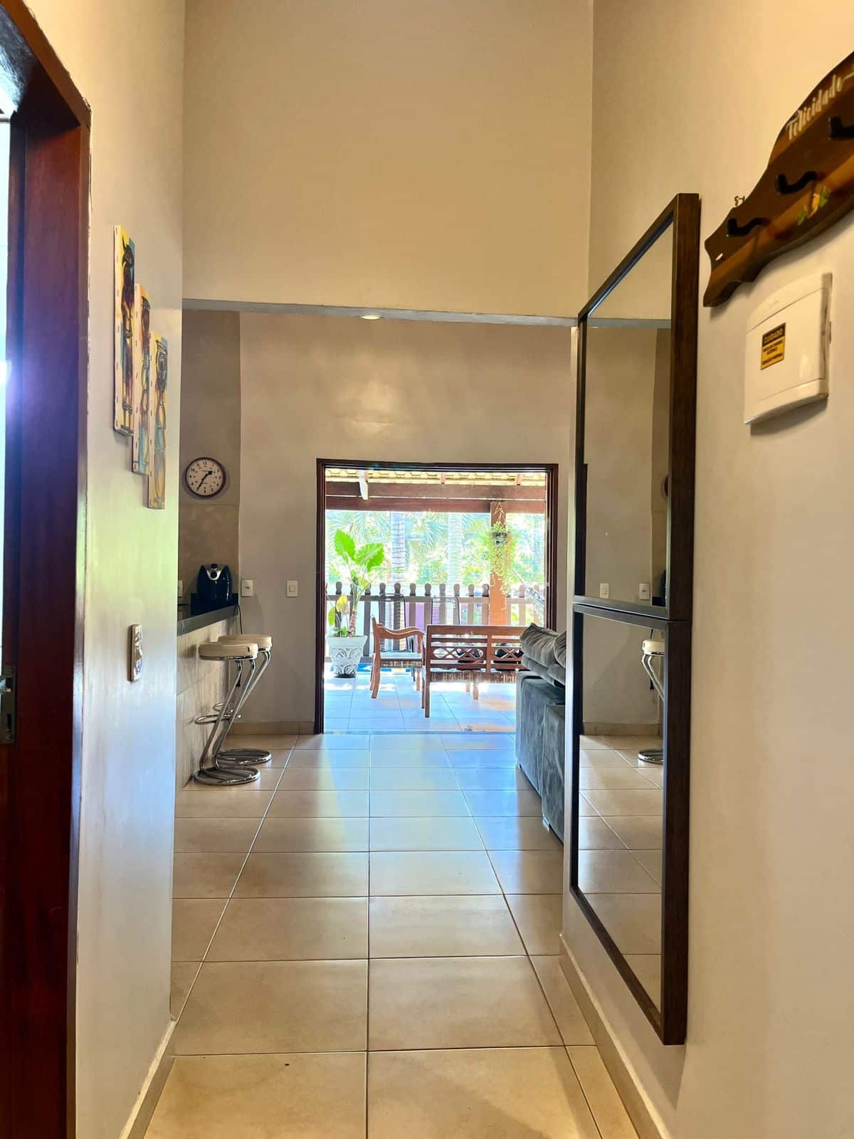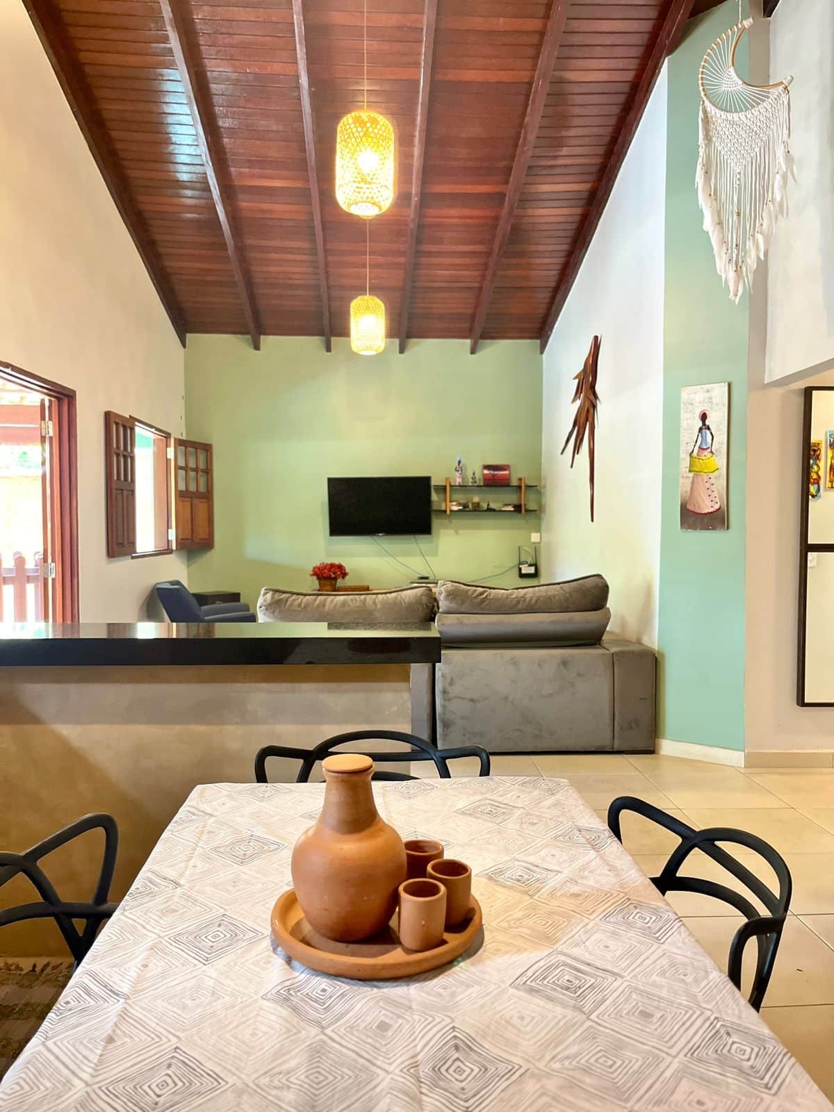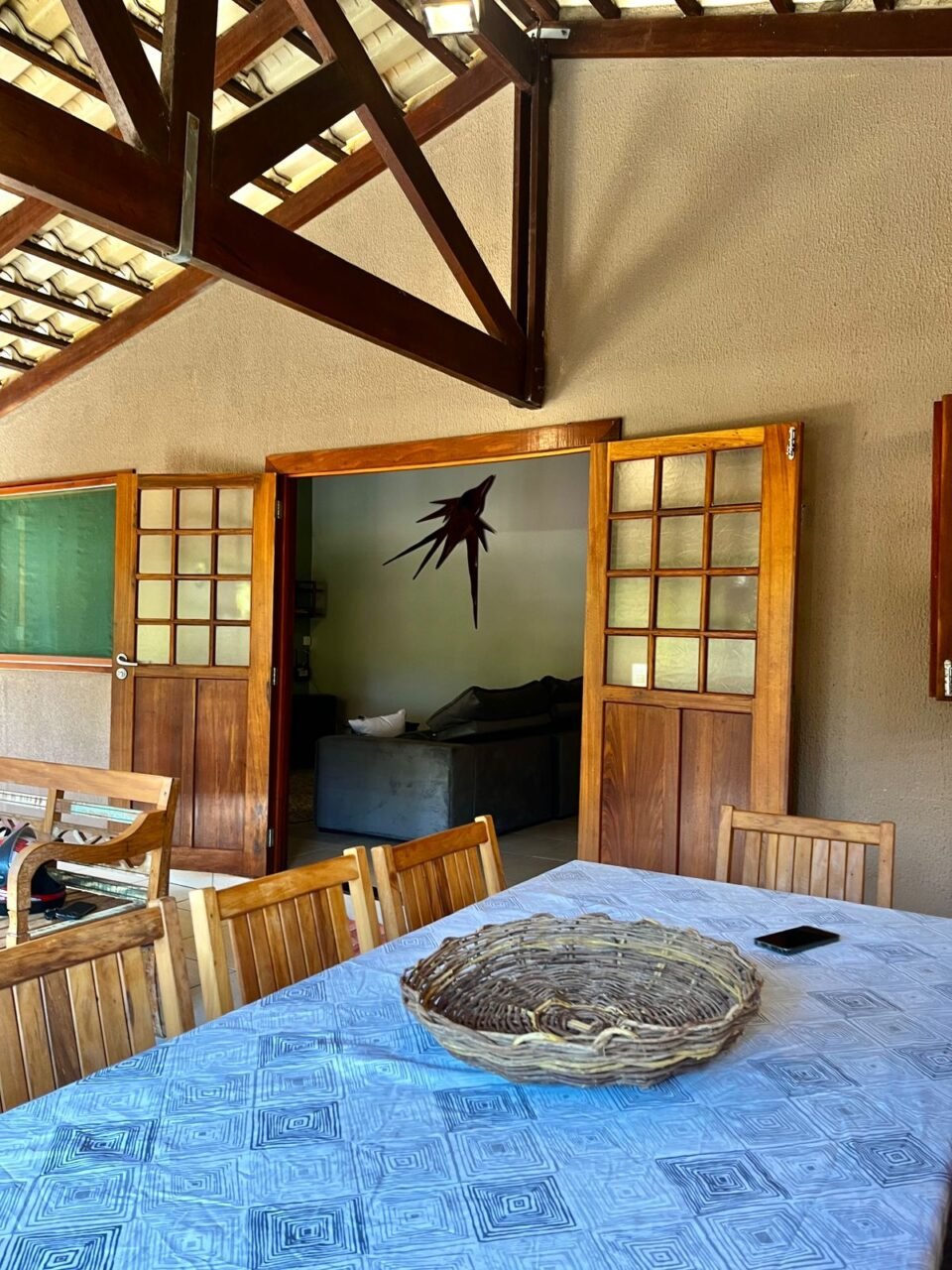 1. Casa de pé direito alto, em bairro tranquilo, localizada em frente a mata de área preservada, próxima ao rio e à trilha para cachoeiras.