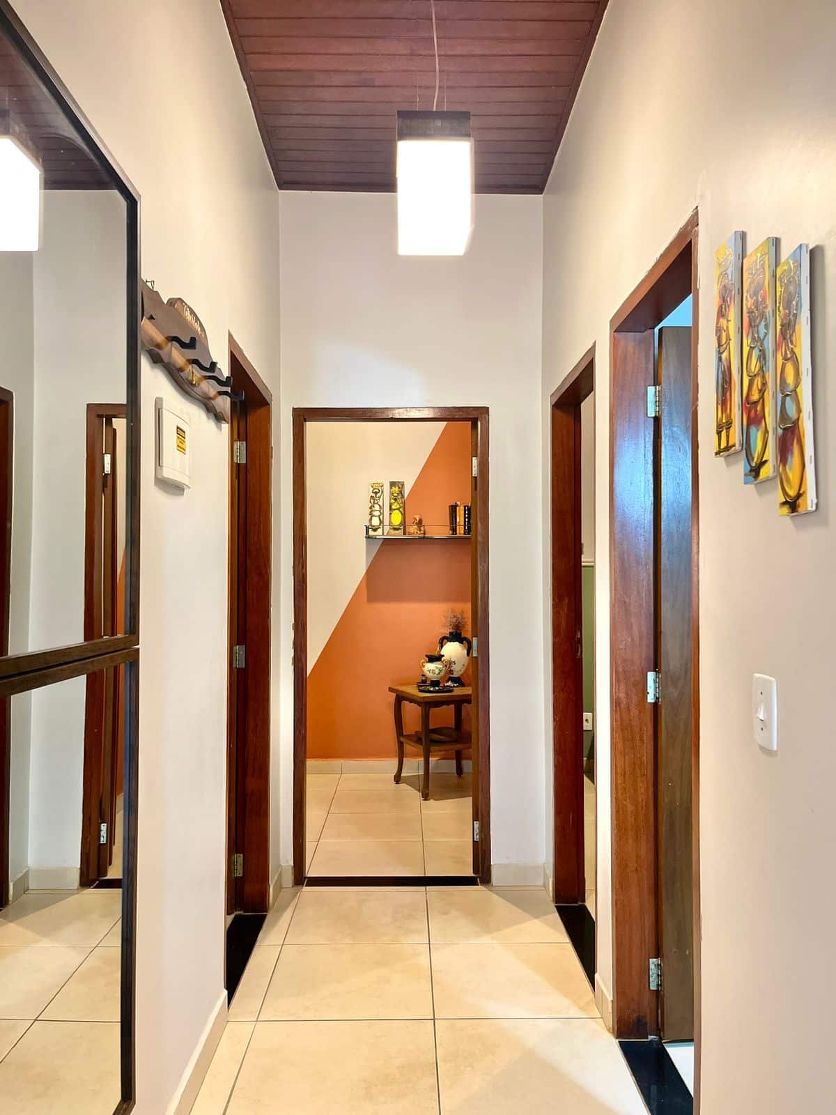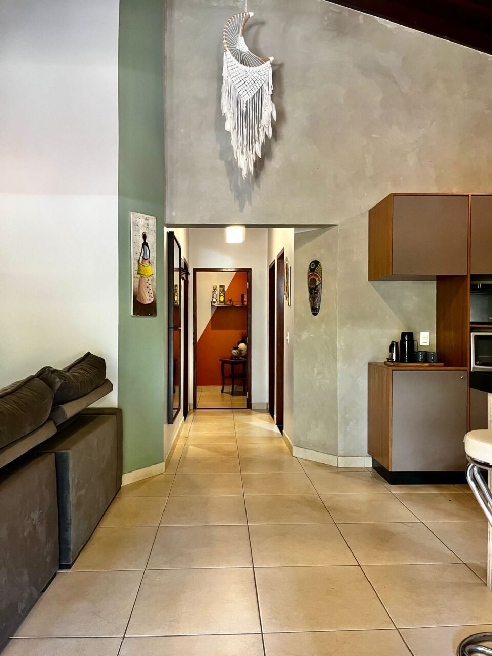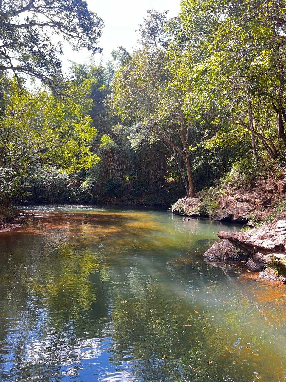 1. Casa de pé direito alto, em bairro tranquilo, localizada em frente a mata de área preservada, próxima ao rio e à trilha para cachoeiras.