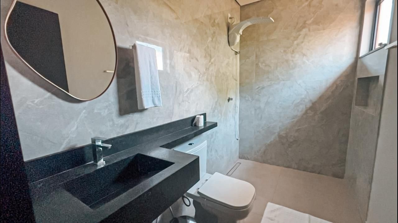 A casa dispõe ainda de dois lavabos, duas vagas de garagem e uma atmosfera que combina o charme rústico de Pirenópolis com o conforto moderno de um projeto cuidadosamente planejado.