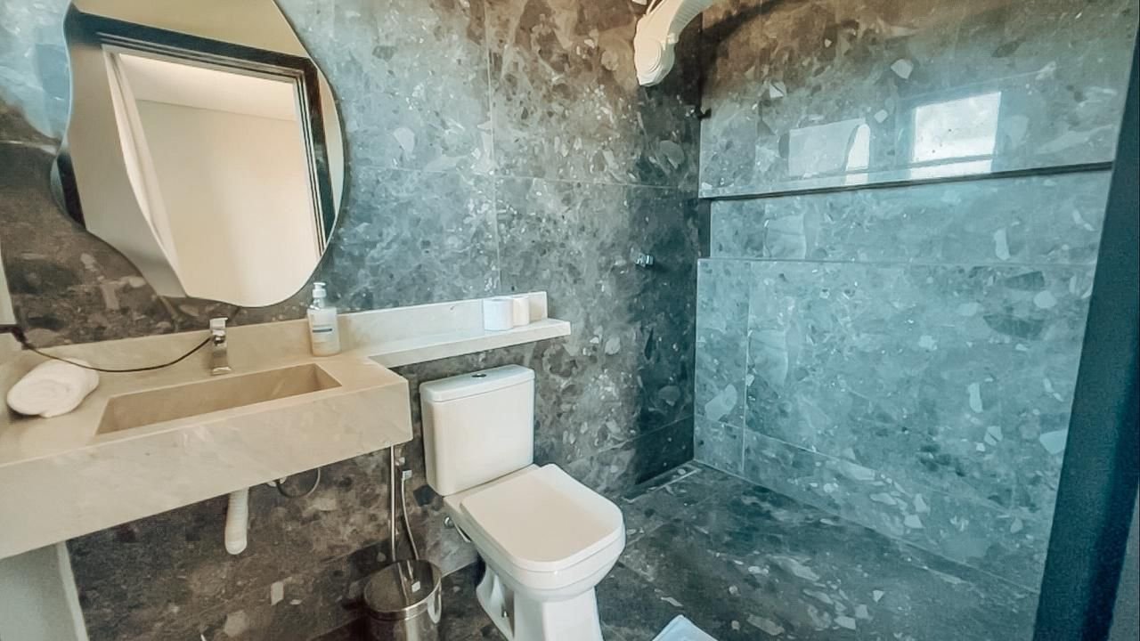 São 6 suítes amplas e confortáveis, todas equipadas com ar-condicionado, cortinas blackout e camas Queen novas, garantindo total conforto.
