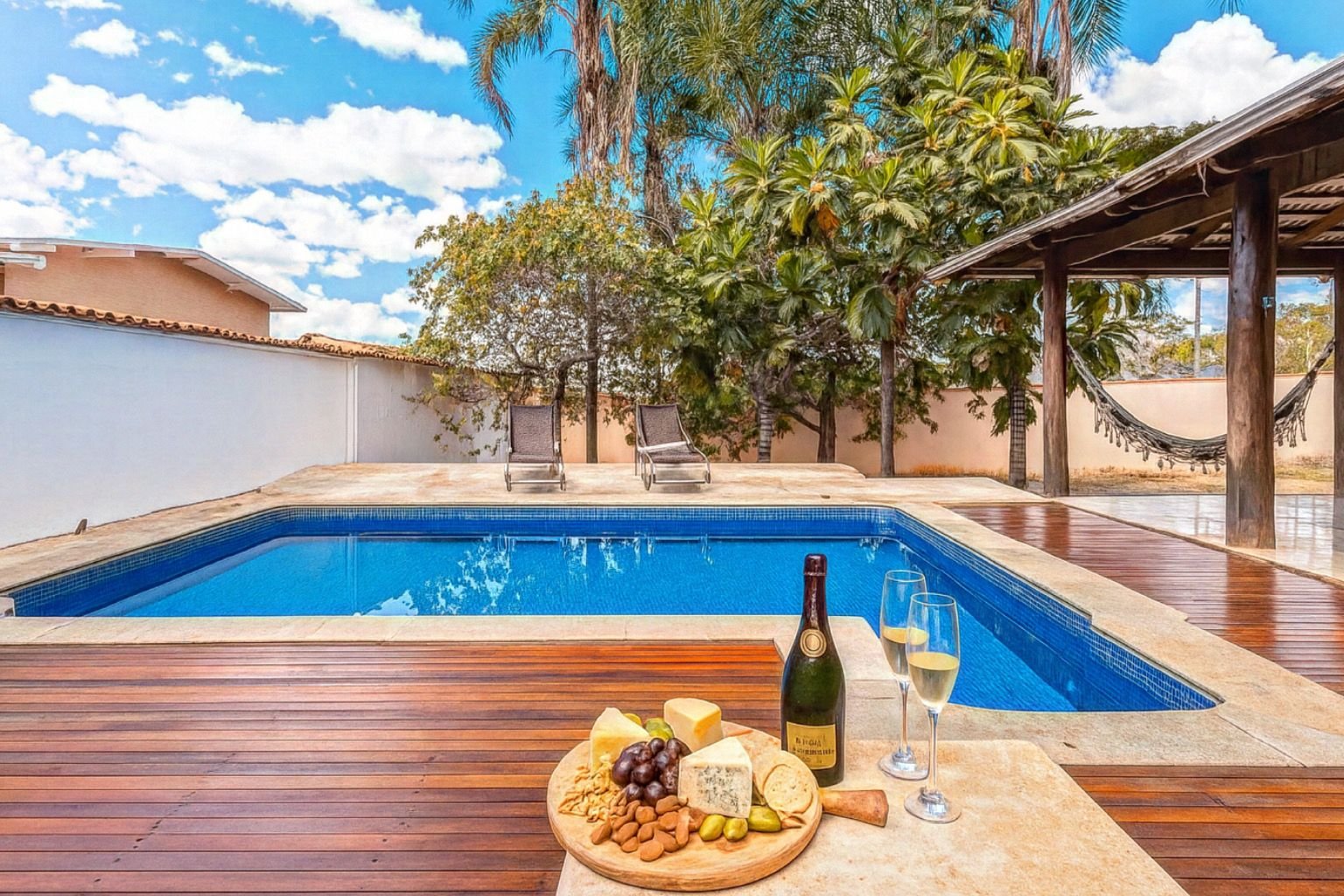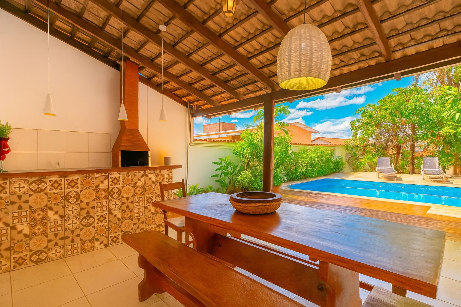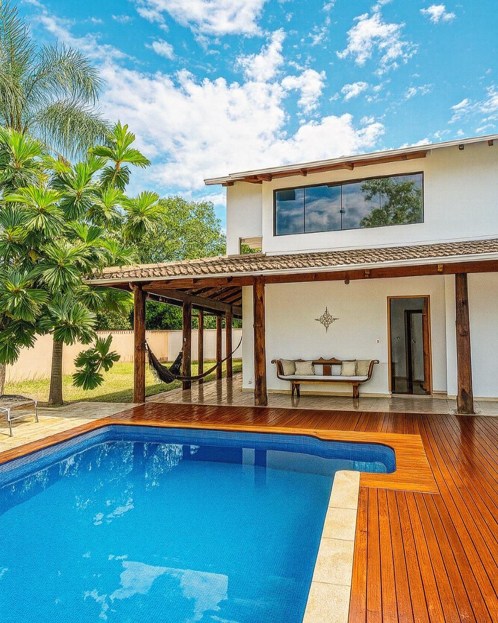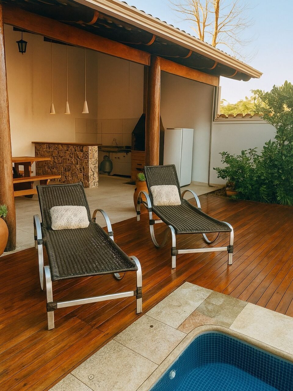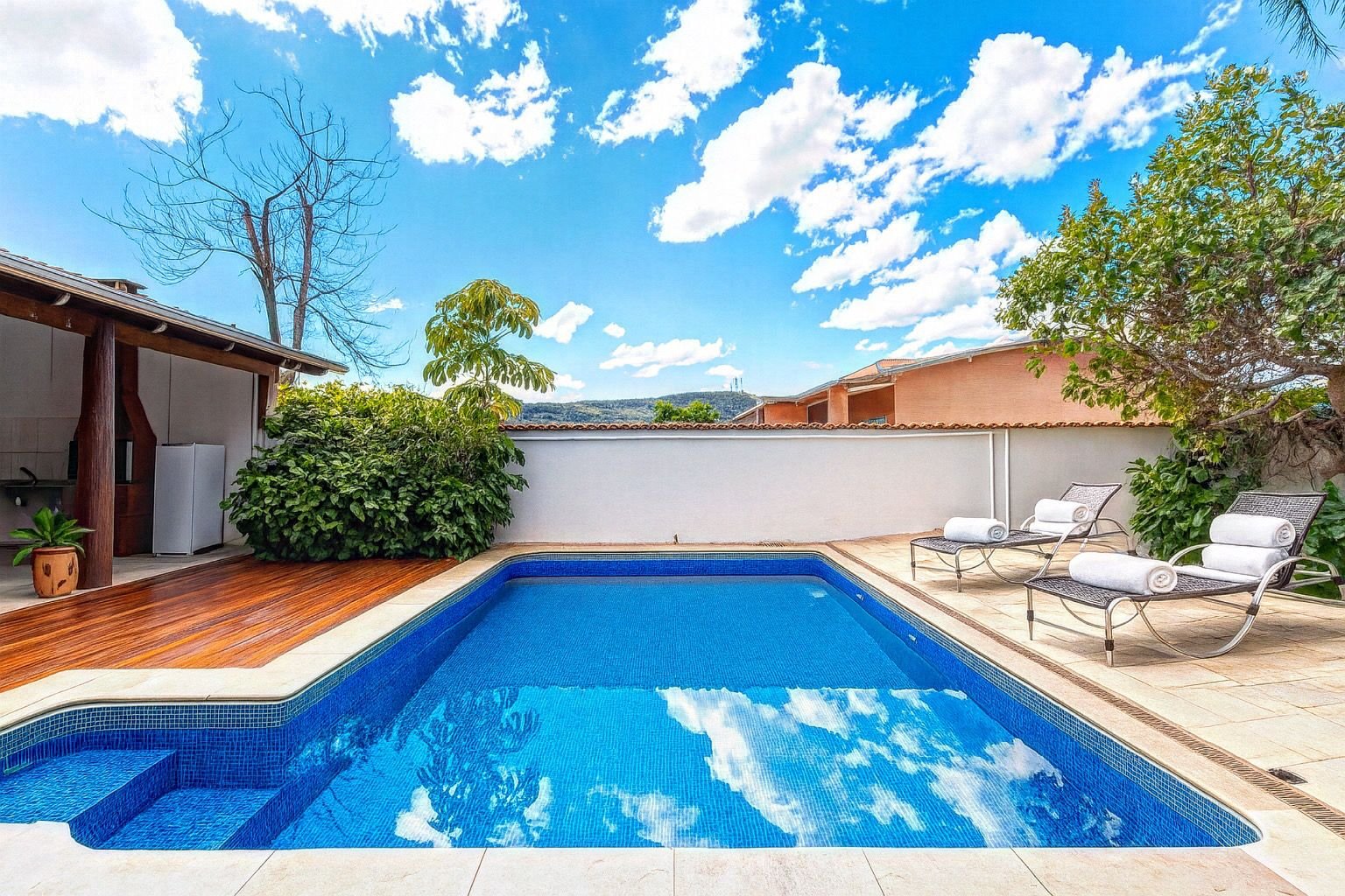 Piscina com aquecimento solar, pensada para oferecer conforto mesmo nos dias mais frescos.