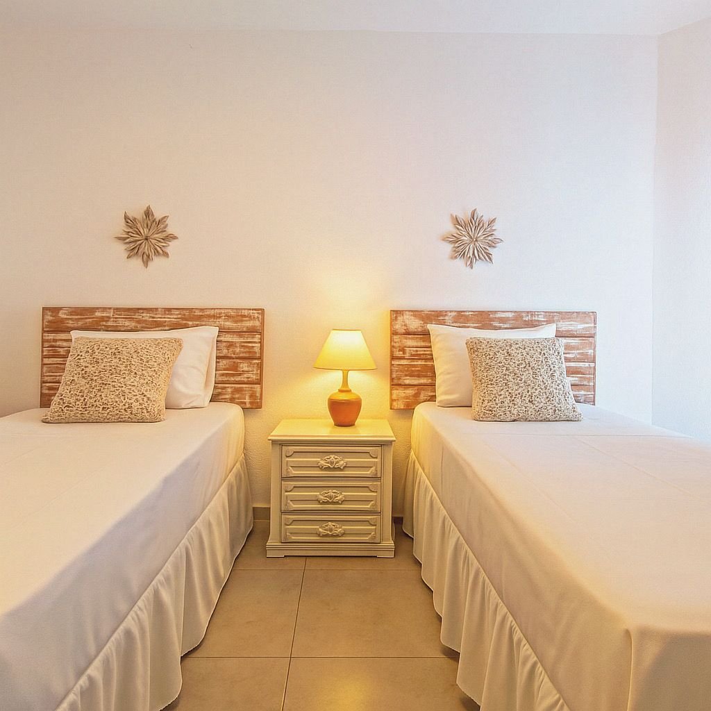 6 quartos, sendo 3 suítes e 3 quartos com 2 camas de solteiro cada, todos equipados com maleiro para garantir o máximo de conforto.
