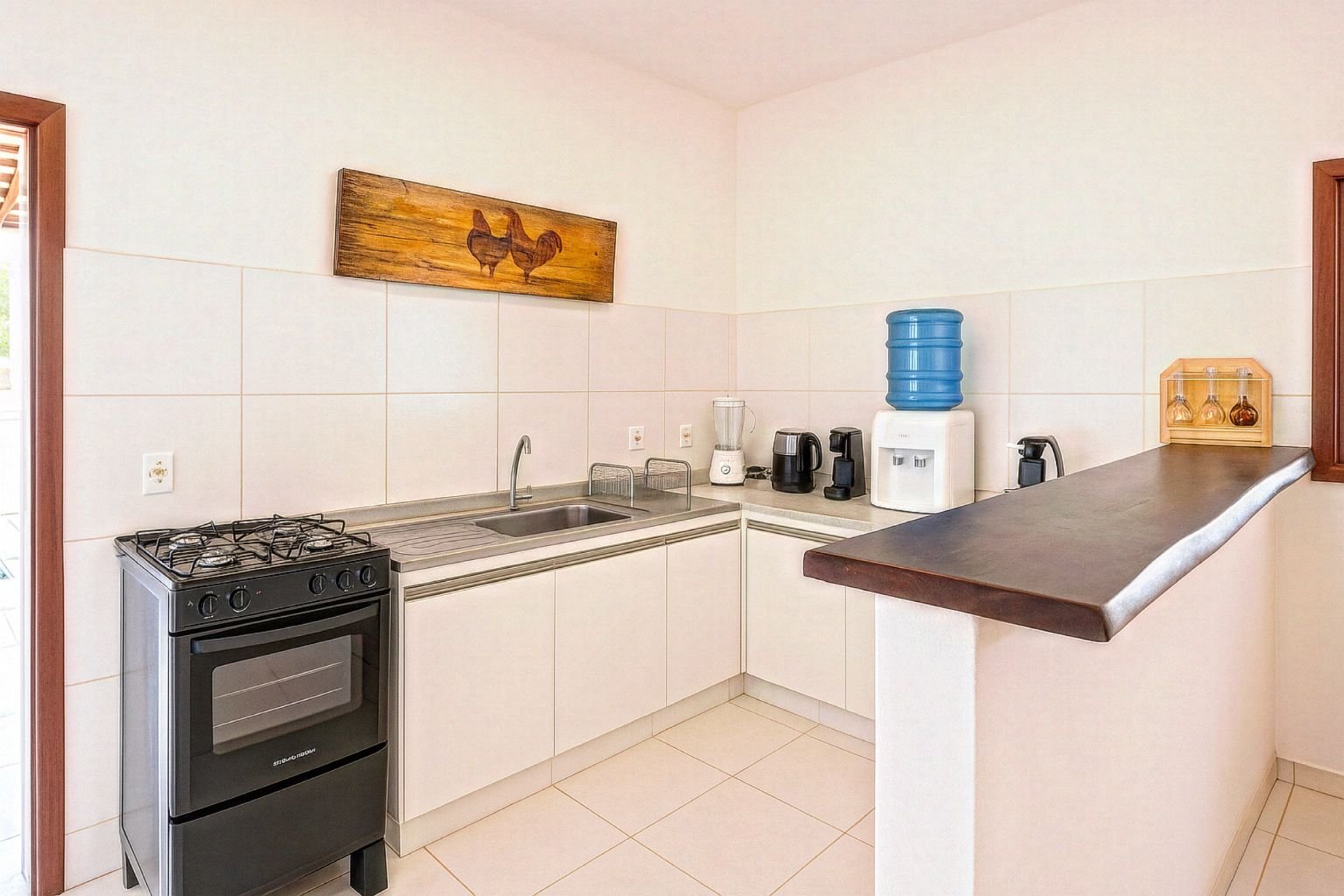 Cozinha completa, equipada com todos os utensílios básicos para preparar desde aquele café da manhã especial até um almoço em família.